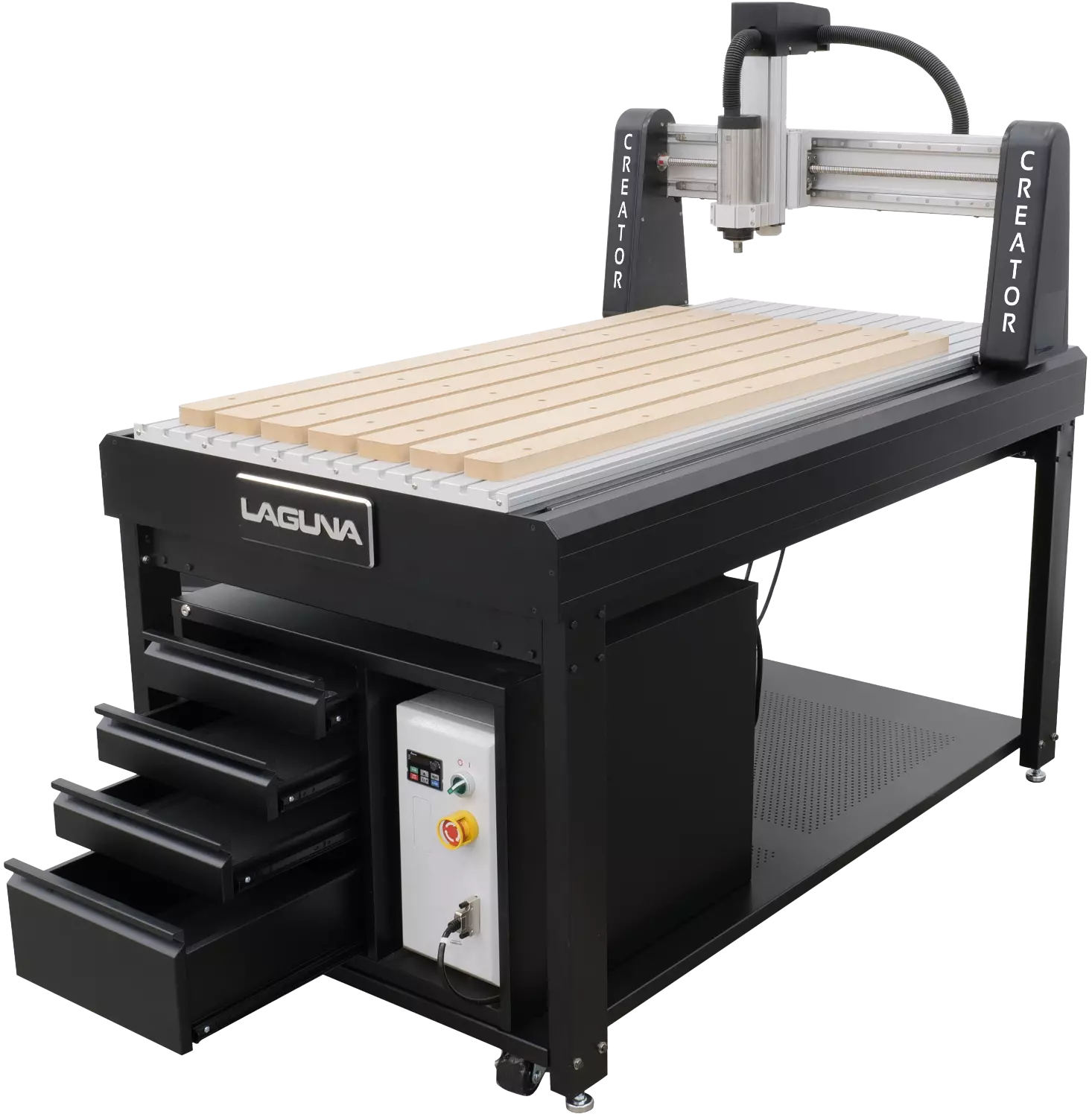 The Laguna Creator is a desktop CNC designed to bring pro‑grade precision to compact shops and schools. An all‑metal frame, linear guides, and ballscrew Z‑axis provide smooth motion and repeatable accuracy. The bundled control software and touch pendant simplify workflows without a dedicated PC. Ideal for wood, plastics, foams, and non‑ferrous prototyping.